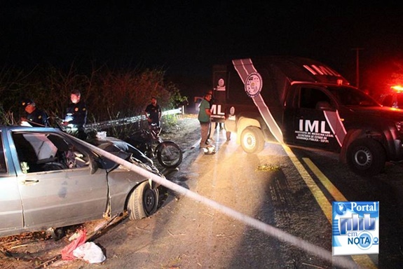 Acidente grave na BR 402 em Parnaíba deixa dois mortos e um ferido Por Delta | 24/09/2018 | Sem Comentários Duas pessoas morreram e outra ficou ferida após um grave acidente envolvendo um veículo Fiat Uno, na cor verde e uma motocicleta por volta das 20h30 deste domingo (23), na BR-402 na altura do KM 40 próximo à entrada da localidade Gameleira, zona rural de Parnaíba. De acordo com informações de populares, a colisão foi na traseira da moto, os ocupantes da motocicleta, um casal identificados por João e Natália, morreram na hora. Já um homem que era o condutor do veículo ficou com múltiplas fraturas e foi levado ao Hospital Estadual Dirceu Arcoverde (HEDA) em estado grave. A polícia ainda não soube o que motivou o acidente e uma perícia foi feita no local. Os corpos das duas vítimas foram encaminhados ao Posto Avançado do (IML). Bastante abalados, familiares das vítimas não quiseram falar com a imprensa. João e Natália, vítimas de acidente de moto na BR 402 João e Natália eram o casal da Pastoral da família da Paróquia Santa Ana, da Rua Santana, bairro Piauí, em Parnaíba. No veículo a polícia encontrou em uma mochila, a quantia de mil reais. O valor estava todo trocado. Não se sabe ainda procedência. Com informações do Click Parnaíba. Compartilhe isso: Clique para compartilhar no X(abre em nova janela) 18+ Clique para compartilhar no Facebook(abre em nova janela) Facebook Clique para compartilhar no WhatsApp(abre em nova janela) WhatsApp Clique para compartilhar no Telegram(abre em nova janela) Telegram Clique para imprimir(abre em nova janela) Imprimir Curtir isso:Curtir Carregando... Relacionado 0 Comentários Deixe o seu comentário! Nome: Email: Website: Mensagem: Δ Cancelar Resposta