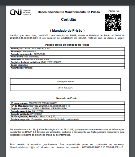 Bate-boca por conta de bebedeira deixa um morto na Ilha Grande do Piauí Por Delta | 11/01/2021 | Sem Comentários Contra o acusado havia mandado de prisão com base no mesmo crime, homicídio qualificado. A Força Tática de Parnaíba prendeu em flagrante delito por volta das 19hs deste domingo(10), o lavrador identificado como Valdemir de Sousa Rocha, 58 anos, residente à Rua São Paulo, nº 447, Ilha Grande do Piauí. Ele foi preso acusado de ter matado seu desafeto Renato de Oliveira Cardoso, 52 anos, com um violento golpe de faca, atingindo a região torácica da vítima, que ainda foi socorrida pelo Samu e morreu antes de dá entrada no hospital. Ele contou que estava bebendo cachaça serrana e que Renato lhe provocou o chamando de ‘fuleragem’. Ele revidou o chamando de ‘pau no cu’, dai começou a confusão já próximo de sua residência, localizada à Rua São Paulo, naquela Ilha. Após furar o desafeto, foi contido por populares, sendo entregue à polícia. Na central de flagrantes, Valdemir Rocha foi autuado pelo delegado Rodrigo Mello no crime de homicídio qualificado. Contra ele havia um mandado de prisão expedido pela Vara de Execuções Penais da Comarca de Parnaíba e assinado pela juíza Maria do Perpetuo do Socorro Ivani de Vasconcelos, com base no crime de homicídio qualificado por motivação fútil, fato ocorrido em 03 de fevereiro de 2005, por volta das 11h na Travessa Dona Glória, naquela cidade, que teve como vítima Gilberto do Nascimento Soares. Uma das facas usada no crime apreendida pela polícia. Valdemir foi enviado para exame de corpo de delito nesta manhã de segunda-feira(11). Cópia do mandado de prisão do homicídio de 2005, lesão corporal seguida de morte. Quando foi preso, o tenente Souza Filho tomou conhecimento do mandado contra ele. Por Jr Catita Compartilhe isso: Clique para compartilhar no X(abre em nova janela) 18+ Clique para compartilhar no Facebook(abre em nova janela) Facebook Clique para compartilhar no WhatsApp(abre em nova janela) WhatsApp Clique para compartilhar no Telegram(abre em nova janela) Telegram Clique para imprimir(abre em nova janela) Imprimir Curtir isso:Curtir Carregando... Relacionado 0 Comentários Deixe o seu comentário! Nome: Email: Website: Mensagem: Δ Cancelar Resposta