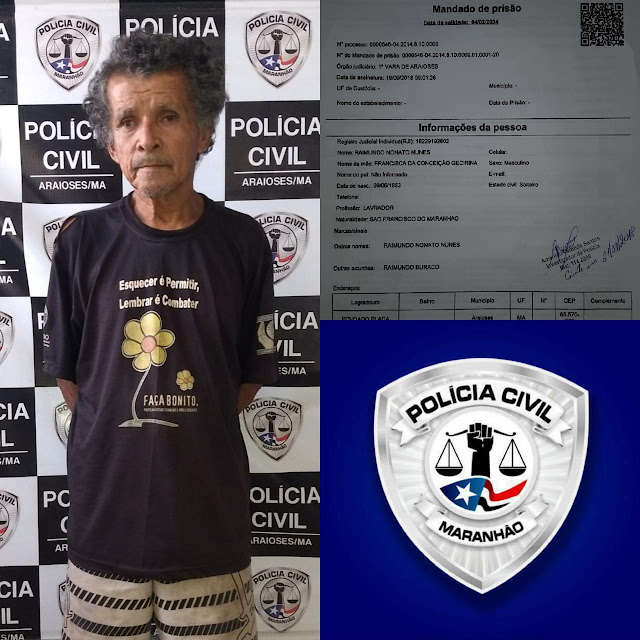 Idoso é preso acusado de estrupo de vulnerável em Araioses MA. Por Delta | 27/09/2018 | Sem Comentários Na última quarta-feira (26/09), a Polícia Civil do Maranhão, através da Delegacia de Araioses – 20ª DRB, cumpriu um Mandado de Prisão Preventiva, expedido contra Raimundo Nonato Nunes, vulgo Raimundo Buraco, de 65 anos, suspeito da prática do crime de estupro de vulnerável, contra uma pessoa menor de 14 anos, ocorrido em 2014. A prisão ocorreu no Povoado Placas, na zona rural de Araioses, há cerca de 25 km do centro da cidade. O indivíduo segue custodiado na Delegacia de Araioses, à disposição do Poder Judiciário, aguardando transferência para o Sistema Prisional. Fonte: Raphael Reis, Delegado Titular da DPC / Araioses. Compartilhe isso: Clique para compartilhar no X(abre em nova janela) 18+ Clique para compartilhar no Facebook(abre em nova janela) Facebook Clique para compartilhar no WhatsApp(abre em nova janela) WhatsApp Clique para compartilhar no Telegram(abre em nova janela) Telegram Clique para imprimir(abre em nova janela) Imprimir Curtir isso:Curtir Carregando... Relacionado 0 Comentários Deixe o seu comentário! Nome: Email: Website: Mensagem: Δ Cancelar Resposta