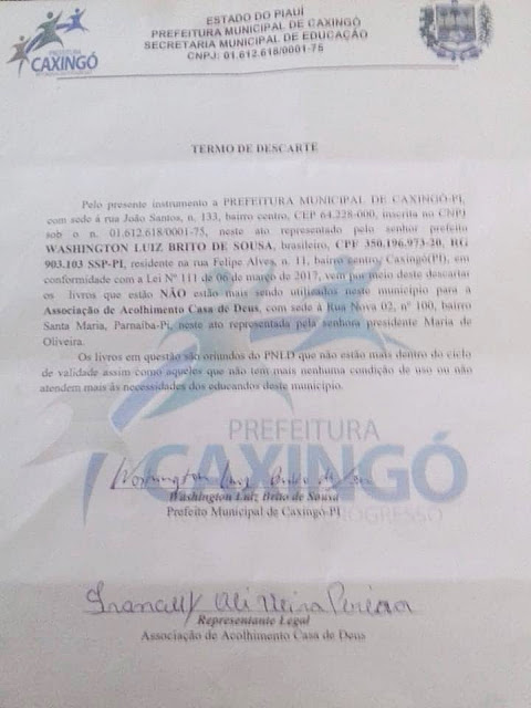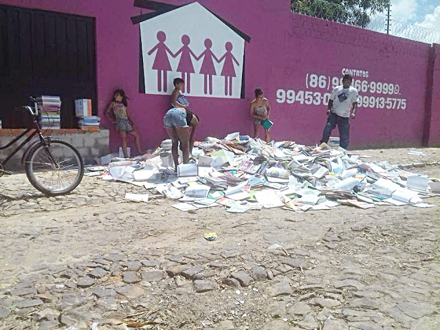 Livros da Educação Básica de Caxingó-PI são jogados em frente à casa das Samaritanas em Parnaíba Por Delta | 13/12/2018 | Sem Comentários Uma grande quantidade de livros da educação básica foram despejados em frente à Casa das Samaritanas, localizada na Rua Frei Inocêncio, Bairro Piauí. O material é proveniente da Prefeitura de Caxingó, município localizado 300 km da capital do Estado, Teresina. O Blog entrou em contato com a coordenação da Casa das Samaritanas, instituição que tem um trabalho sério e decente voltado para mulheres em situação de vulnerabilidade e obteve a informação por meio da responsável, Luíza Teles, de que a Prefeitura de Caxingó enviou o material para a Casa dos Filhos de Deus, que funcionava no mesmo local anteriormente. Uma representante do espaço social foi questionada se a Casa das Samaritanas teria interesse em receber o material e esta confirmou positivamente e assinou um ofício da Prefeitura. Mas a coordenação da casa disse que nunca imaginou que os livros seriam despejados em frente a instituição dessa maneira. No momento, os exemplares se encontram em frente à Casa como se fossem lixo. “Algumas pessoas acham que fomos nós que jogamos os livros fora, mas foram as pessoas que vieram fazer a entrega. Nós aqui realizamos um trabalho sério com essas mulheres que já passaram por alguma situação de violência. Foi uma falta de responsabilidade de quem veio realizar essa entrega por parte da Prefeitura de Caxingó”, frisou Luiza Teles. Abaixo o ofício que confirma a origem do material despejado em frente à instituição social. Tacyane Machado – Blog Extra Parnaíba Compartilhe isso: Clique para compartilhar no X(abre em nova janela) 18+ Clique para compartilhar no Facebook(abre em nova janela) Facebook Clique para compartilhar no WhatsApp(abre em nova janela) WhatsApp Clique para compartilhar no Telegram(abre em nova janela) Telegram Clique para imprimir(abre em nova janela) Imprimir Curtir isso:Curtir Carregando... Relacionado 0 Comentários Deixe o seu comentário! Nome: Email: Website: Mensagem: Δ Cancelar Resposta