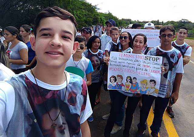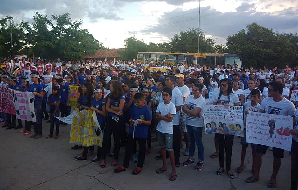 Moradores da comunidade Brejinho em Luís Correia realizam caminhada de combate ao feminicídio Por Delta | 14/07/2018 | Sem Comentários Ainda consternados em razão da morte da jovem professora Selene Veras Roque, brutalmente assassinada pelo marido, no último dia 03 de junho do corrente ano, centenas de moradores da comunidade Brejinho, município de Luís Correia, onde a moça residia, organizaram-se nas vias públicas do povoado e participaram de caminhada para expressar indignação com o caso e “levantar a bandeira” de combate ao feminicídio. A caminhada teve início na Escola Rita Miranda Brito. Alunos da localidade também participaram do ato. Familiares e amigos de Selene Roque também estiveram na caminhada. Acompanhe a fala de Solange Veras Roque, fazendo a abertura do ato. Solange é irmã de Selene Roque Moradores durante a caminhada seguravam cartazes com frases voltadas ao combate à violência contra a mulher, como: “O feminismo nunca matou ninguém. O machismo mata todos os dias”, “Feminicídio, Stop!”, “Ninguém mata por amor”, “Não à violência contra mulheres”, “Violência contra mulher também é problema seu”, “Não foi a primeira, mas exigimos que seja a última”, dentre outras. A família da professora também promete realizar um ato contra o feminicídio e pela permanência da prisão do assassino no dia da audiência, em que o assassino deverá comparecer ao fórum de Luís Correia, no dia 25 de julho, as 10h. Por Tacyane Machado – Blog Extra Parnaíba Compartilhe isso: Clique para compartilhar no X(abre em nova janela) 18+ Clique para compartilhar no Facebook(abre em nova janela) Facebook Clique para compartilhar no WhatsApp(abre em nova janela) WhatsApp Clique para compartilhar no Telegram(abre em nova janela) Telegram Clique para imprimir(abre em nova janela) Imprimir Curtir isso:Curtir Carregando... Relacionado 0 Comentários Deixe o seu comentário! Nome: Email: Website: Mensagem: Δ Cancelar Resposta