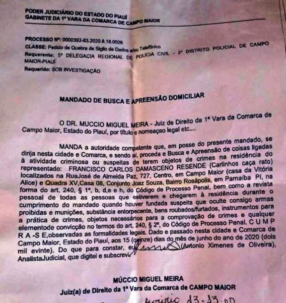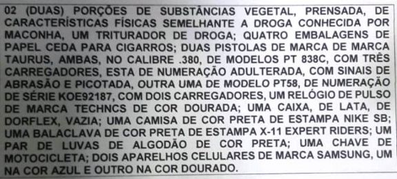 Operação do 2º BPM de Parnaíba captura elemento perigoso e apreende armas, munições e droga Por Delta | 22/06/2020 | Sem Comentários Sob coordenação do coronel Antônio Pacífico Neto, homens lotados do 2º Batalhão da Polícia Militar do Piauí, deflagaram neste domingo(21), a operação que resultou na prisão de um criminoso altamente perigoso, que fazia de Parnaíba seu mais novo local de atuação delituosa. A prisão de Valdeir Cardoso Teixeira ocorreu na casa investigada localizada no conjunto Joaz Souza, bairro Igaraçu na cidade de Parnaíba. No local a polícia apreendeu duas pistolas calibre 380 com 05 carregadores e 300 gramas de maconha. Veja o material ilícito apreendido na operação: Chegada de Valdeir a central de flagrantes sob forte escolta. A prisão de Valdeir Cardoso Teixeira, vulgo Deir, 26 anos, residente de origem no Povoado Ponta do Mato, Zona Rural de Barras-PI, foi coordenada também pelo delegado Regional de Campo Maior, Dr. Péricles Lima. Além do Serviço Reservado, Rocam, Gaecim, Força Tática e apoio de outras patrulhas da PM. Além dos mandados da justiça, Valdeir vai responder pelo flagrante das armas e da maconha. Relógio de ouro apreendido na operação. Os mandados foram cumpridos simultaneamente nas cidades de Parnaíba e Campo Maior-PI. A polícia logrou êxito, além dos mandados cumpridos, também pelas apreensões. Compartilhe isso: Clique para compartilhar no X(abre em nova janela) 18+ Clique para compartilhar no Facebook(abre em nova janela) Facebook Clique para compartilhar no WhatsApp(abre em nova janela) WhatsApp Clique para compartilhar no Telegram(abre em nova janela) Telegram Clique para imprimir(abre em nova janela) Imprimir Curtir isso:Curtir Carregando... Relacionado 0 Comentários Deixe o seu comentário! Nome: Email: Website: Mensagem: Δ Cancelar Resposta