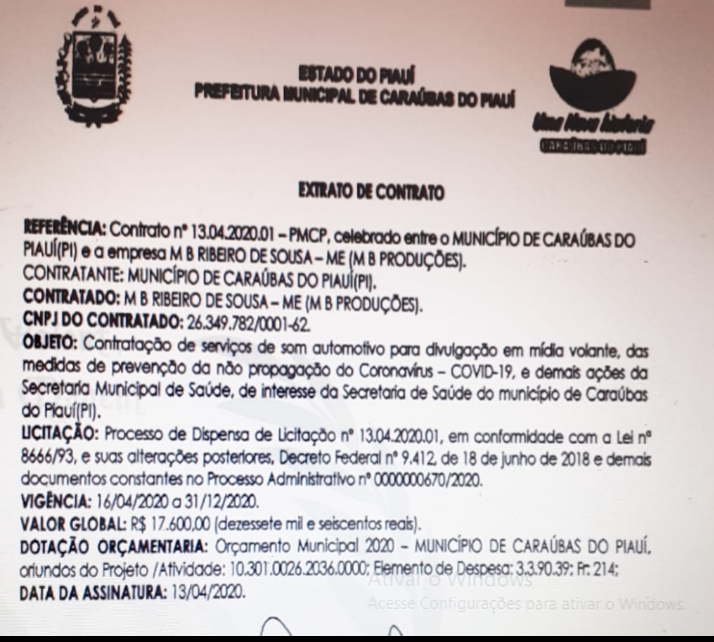 Prefeito Caburé do PT em plena Pandemia do Coronavírus contrata paredão de som por 17 mil reais. Por Delta | 28/04/2020 | Sem Comentários A cidade de Caraúbas do Piauí ao norte do estado, está estarrecida com o que vem acontecendo na gestão do petista Caburé. Alguns moradores tem acompanhado o desvio de conduta do atual prefeito de Caraúbas. Foi publicado no diário oficial do município a licitação da contratação de um paredão de som por 17 mil reais, é isso mesmo. A população não engoliu essa história e não se comenta outra coisa na cidade. O prefeito falou que este som é para fazer a divulgação de campanha do combate ao Covid-19, o novo coronavírus. A população está revoltada, pois dizem que isso é um absurdo, Caraúbas é uma cidade de apenas 5.600 habitantes e o que o prefeito está fazendo é lamentável. “Ficamos muito triste com o que estamos vendo, votamos, acreditamos e hoje ele está fazendo dessa forma com o dinheiro que vem governo federal para ser investido em ações de outra forma para combater esse vírus” disse um morador. Compartilhe isso: Clique para compartilhar no X(abre em nova janela) 18+ Clique para compartilhar no Facebook(abre em nova janela) Facebook Clique para compartilhar no WhatsApp(abre em nova janela) WhatsApp Clique para compartilhar no Telegram(abre em nova janela) Telegram Clique para imprimir(abre em nova janela) Imprimir Curtir isso:Curtir Carregando... Relacionado 0 Comentários Deixe o seu comentário! Nome: Email: Website: Mensagem: Δ Cancelar Resposta