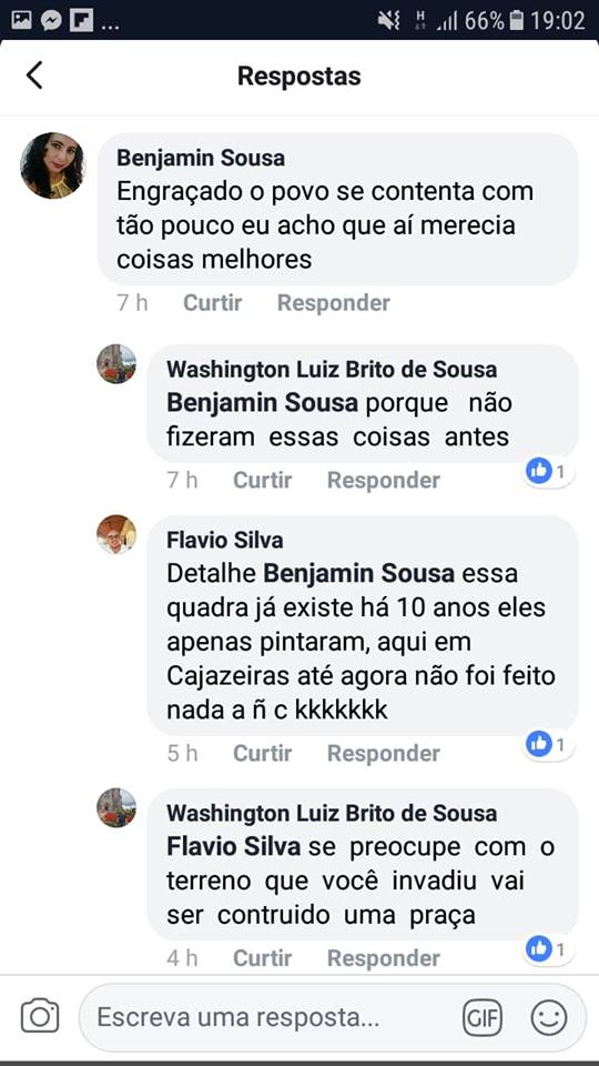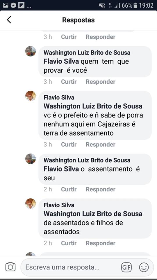 Prefeito de Caxingó “pega ar” e troca farpas com eleitor em rede social. Por Delta | 31/12/2018 | Sem Comentários Já virou rotina esse tipo de comportamento do prefeito de Caxingó, de estar brigando em rede social. O prefeito Washington Luiz não aceita critica de ninguém e quando ver algum comentário sobre sua gestão, já começa os ataques as pessoas que não concordam com o seu modelo de governar. Vejam nas conversas, o comportamento do prefeito, aonde o eleitor chega chamar o mesmo de prefeitinho Compartilhe isso: Clique para compartilhar no X(abre em nova janela) 18+ Clique para compartilhar no Facebook(abre em nova janela) Facebook Clique para compartilhar no WhatsApp(abre em nova janela) WhatsApp Clique para compartilhar no Telegram(abre em nova janela) Telegram Clique para imprimir(abre em nova janela) Imprimir Curtir isso:Curtir Carregando... Relacionado 0 Comentários Deixe o seu comentário! Nome: Email: Website: Mensagem: Δ Cancelar Resposta
